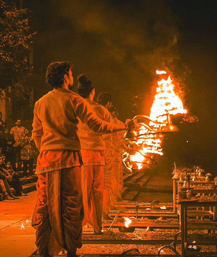 Al amanecer, salida para realizar un paseo en barca por el río Ganges (sujeto al nivel del agua), desembarque y paseo a pie hacia lugar de las cremaciones para vivir el ambiente y callejear por el corazón de la ciudad. Al regreso, desayuno en el hotel. Check-out. A la hora convenida, salida para la visita panorámica de la ciudad de Varanasi incluyendo templo de Bharat Mata. Finalizada la visita, traslado al aeropuerto para tomar vuelo a Delhi. Espera en tránsito en el aeropuerto de Delhi para tomar el vuelo a su siguiente destino.